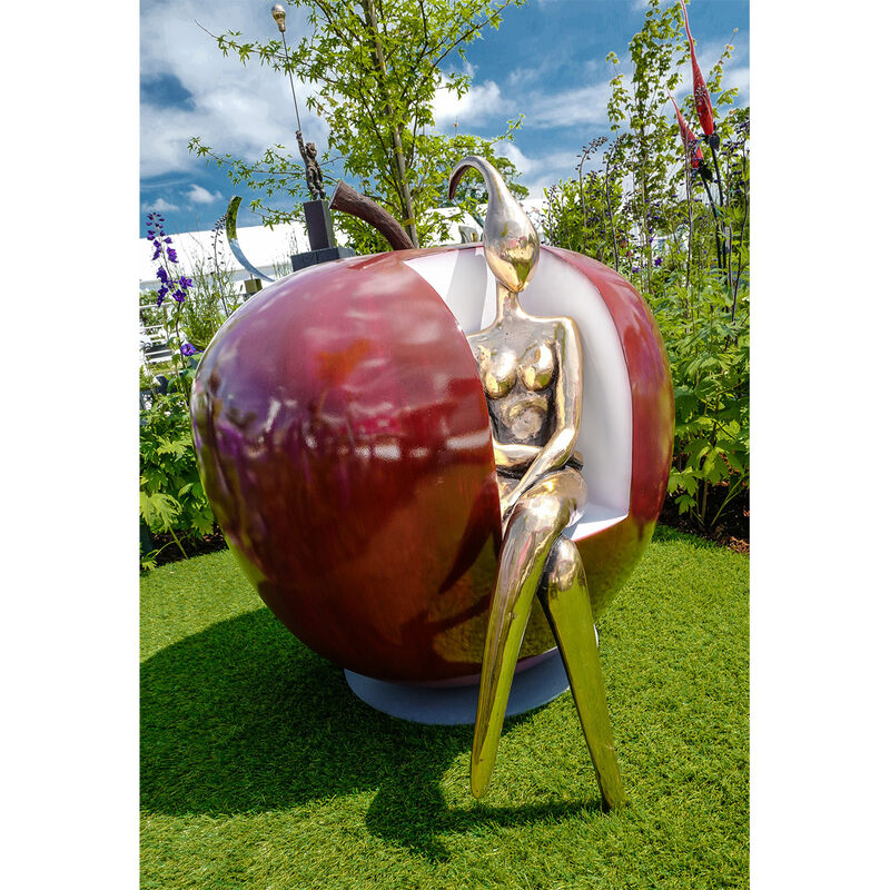 | Finishing | stainless steel with painted finish of apple chair and bronze lady statue, easy to clean and maintain outdoor brilliance. |